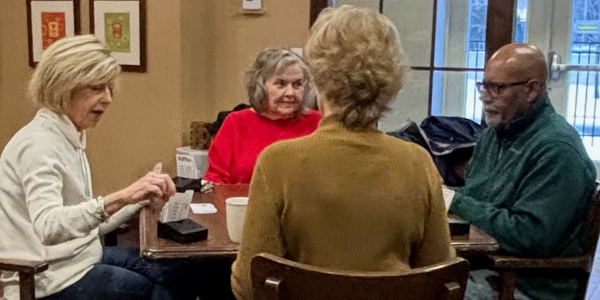 Our bridge group meets on the first and third Tuesday of the month at 9:30 am. All are welcome from experienced to beginner.